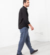 With just enough room to be "oversized," the Balda Pant from Hannes Roether makes functional comfort its priority. Back waist tie for adjustability. Drop crotch. Color Space. 51% Linen, 49% Cotton. Made in the EU. Jacob is wearing a Medium.